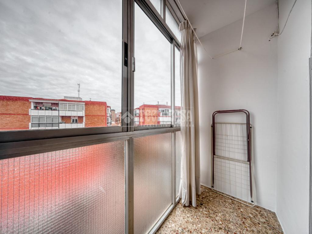 La vivienda tiene una orientación Oeste a la calle Pérez Galdós, sin edificio enfrente, lo que proporciona una luminosidad especial en comparación con el resto del barrio. Todas sus estancias son individuales, con tres dormitorios de buen tamaño, salón con galería, cocina equipada con electrodomésticos y baño con bañera y ventana. Las ventanas de las habitaciones han sido modificadas: son correderas de PVC con climalit simple. El portal ha sido reformado recientemente adaptándose a personas con mobilidad reducida, habiendo instalado un ascensor de 6 plazas recién estrenado. NO ES ÚLTIMA PLANTA.