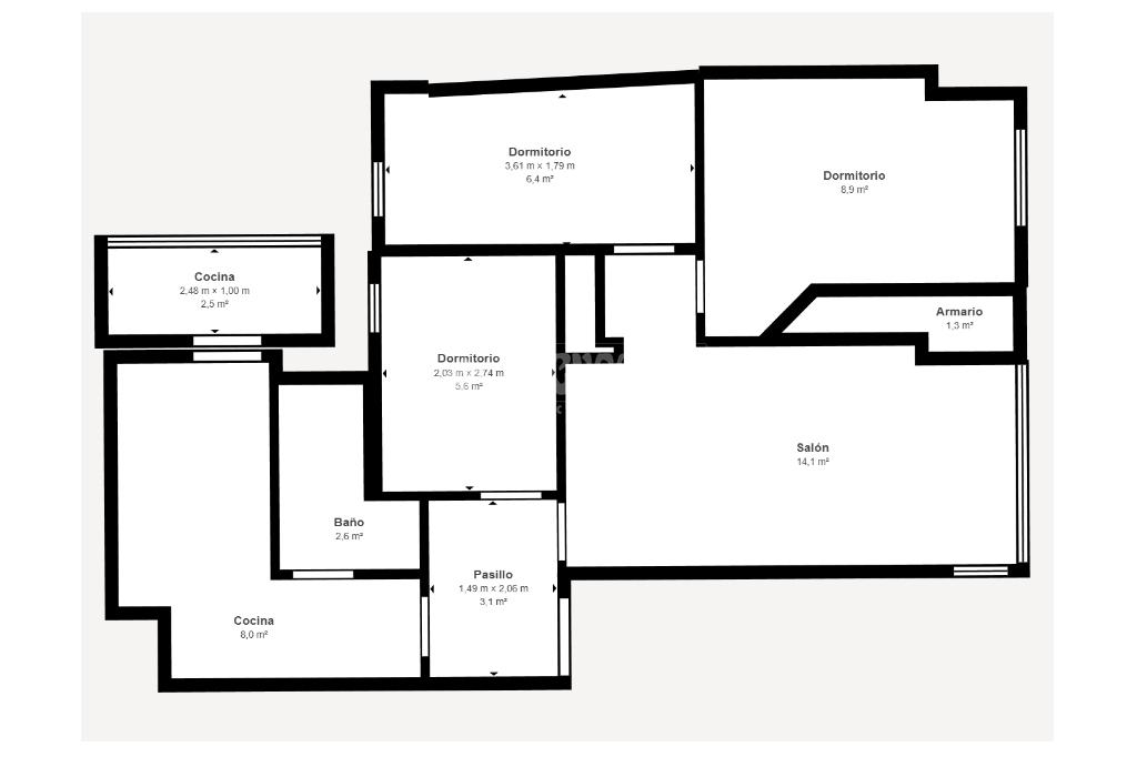 La vivienda tiene una orientación Norte. Cuenta con tres dormitorios, salón que da paso a un distribuidor y las habitaciones, cocina y baño. Con gran posibilidad de reforma, ideal tanto como para primera vivienda como para inversión. Construcción del año 1964.